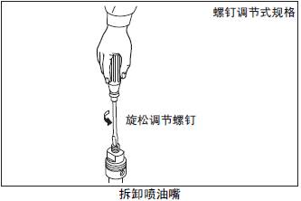(3) 三菱S6R發(fā)動機調整噴油壓力時,先拆除噴油器的定位螺釘,旋松蓋螺帽,用螺絲刀旋轉調節(jié)螺釘。