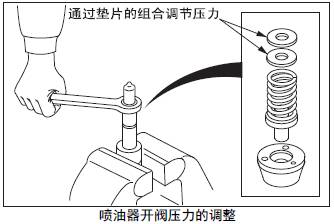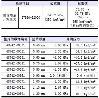 (3) 噴油開始壓力通過增減墊片調整。墊片分0.40 ~1.20 mm 的9 種。參照下表進行調整。