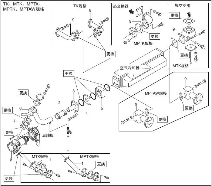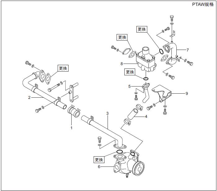 三菱S6R發(fā)動機空氣冷卻器用水泵、三菱S6R發(fā)動機恒溫器、水管的拆卸,檢修