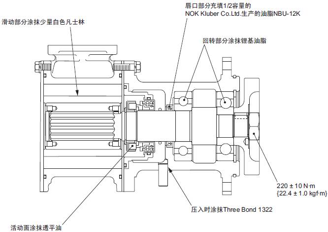 (2) 油封的中空部分以及唇部涂抹油脂。