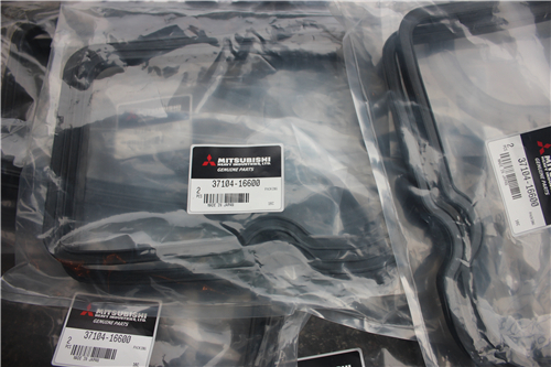 三菱S6R發動機空氣冷卻器進出口接頭和水管間的墊片兩面涂抹硅系密封劑。