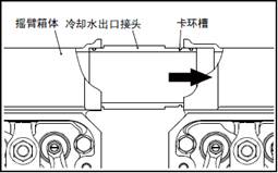 (2) 將冷卻水出口接頭向卡環槽側移動,使和相鄰的搖臂箱體分離。