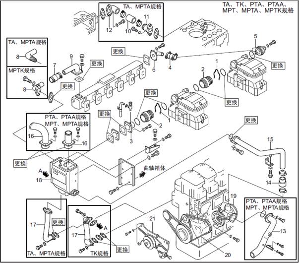 1. 三菱S6R柴油發動機冷卻系統的拆卸,檢測