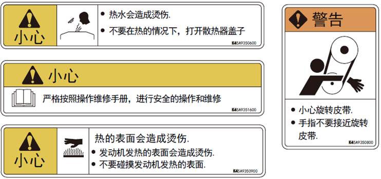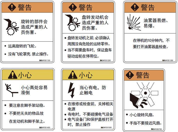 當(dāng)警告標(biāo)簽的說(shuō)明內(nèi)容和示圖不能夠辨認(rèn)時(shí),要進(jìn)行清潔或更換。
