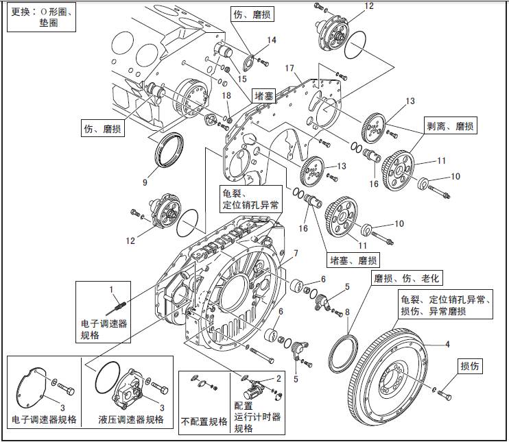 3 三菱S12柴油發(fā)動機調(diào)速器驅(qū)動器(液壓三菱S12柴油發(fā)動機調(diào)速器規(guī)格)( 解體、檢修和組裝參照「三菱S12柴油發(fā)動機燃油系統(tǒng)」項)蓋板( 電子三菱S12柴油發(fā)動機調(diào)速器規(guī)格)