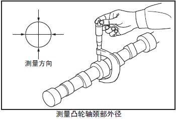 測量三菱S12柴油發(fā)動機凸輪軸頸部正交兩個方向的外徑。超過極限值時更換新的三菱S12柴油發(fā)動機凸輪軸。