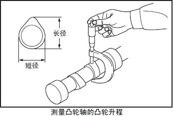 測量各凸輪的長徑和短徑,求出凸輪升程。超過極限值時更換新的三菱S12柴油發(fā)動機凸輪軸