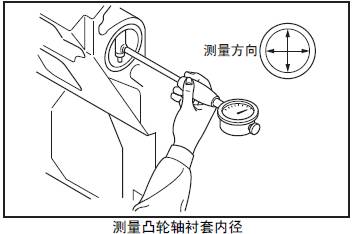 注: 測量內(nèi)徑時,注意不要損傷三菱S12柴油發(fā)動機凸輪軸襯套的內(nèi)面。