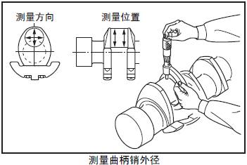 (1) 測量三菱S12柴油發動機曲軸的曲柄銷和三菱S12柴油發動機曲軸頸的外徑。