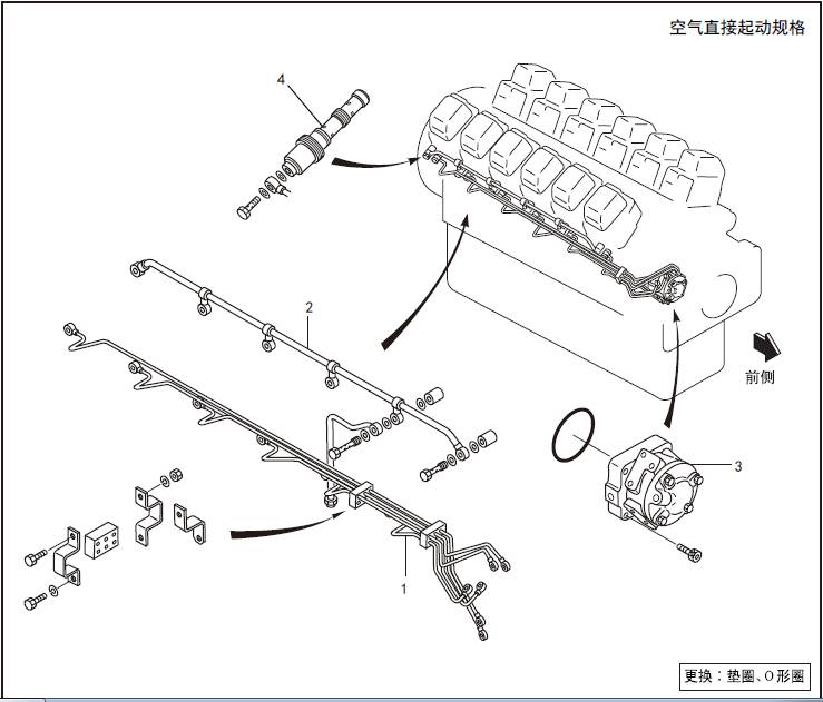1. 拆卸三菱S12柴油發(fā)動機空氣起動系統(tǒng)
