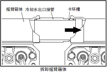 (2) 將冷卻水出口接管朝卡環槽側移動,使其和對接的三菱R16柴油發動機搖臂箱體分離。