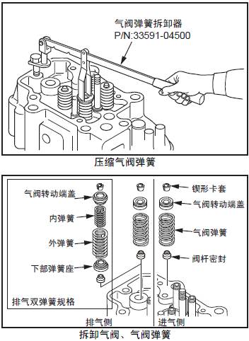 1.11 拆卸氣閥、三菱R16柴油發動機氣閥彈簧