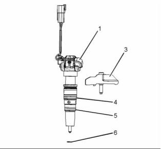 4. Remove electronic unit injector (1) and clamp