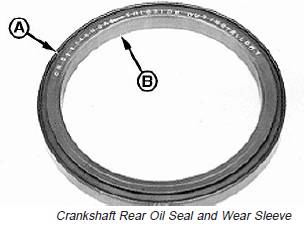 The crankshaft rear oil seal (A) and wear sleeve (B) arefabricated as a non-separable part. To remove the oilseal/wear sleeve assembly, the two following procedurescan be used depending on special tool availability.