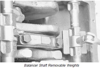 4. Later engines1 have balancer shafts with removable weights. Install weights to balancer shafts using new cap screws and nuts. Tighten to specifications.