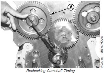 e. Recheck camshaft gear (A) and injection pump drive