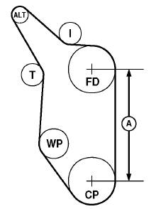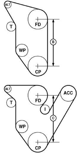 tensioner, etc.) and the belt length. Replace belt as