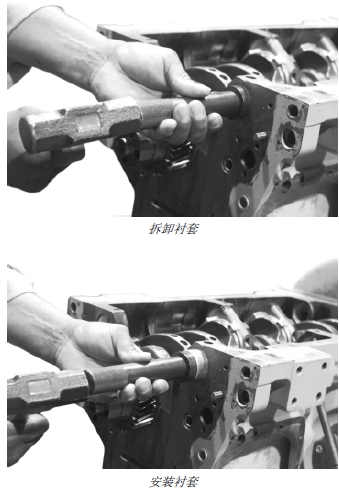 4. 用干凈的機(jī)油潤(rùn)滑襯套,用拆卸襯套時(shí)所用的同樣工具將襯套裝入缸體。