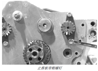 14. 按技術(shù)規(guī)格要求將潤(rùn)滑后的下惰輪帶帽螺釘擰緊。