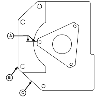 2. 用直尺和細(xì)筆尖標(biāo)記筆,把原前板噴油泵正時(shí)標(biāo)記(A) 轉(zhuǎn)移到模板上。從更換的前板上取下模板。