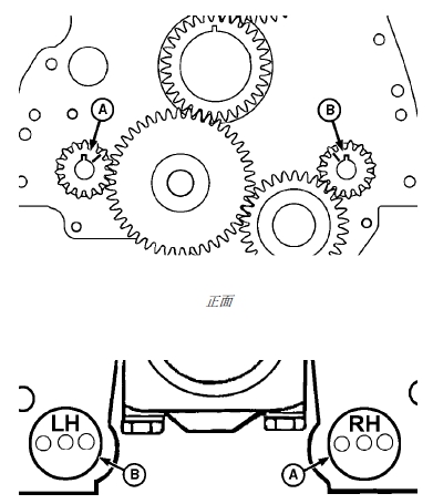 3. 如圖所示,按齒輪正時(shí)標(biāo)記標(biāo)識(shí)左右平衡軸。