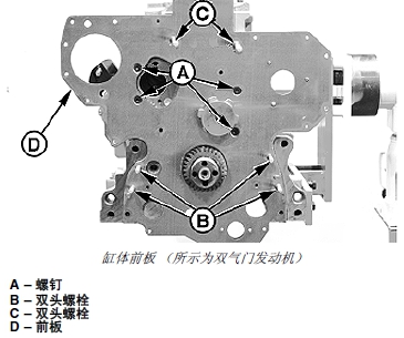 四氣門(mén)John Deere約翰迪爾強(qiáng)鹿柴油發(fā)動(dòng)機(jī)用雙頭螺栓固定噴油泵和正時(shí)齒輪蓋。必要時(shí)拆卸。