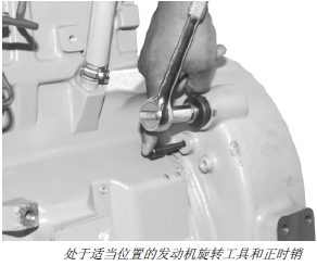 1. 用 JDE81-1 或 JDE83 飛輪旋轉(zhuǎn)工具和 JDG1571 或JDE81-4 正時(shí)銷(xiāo),將一號(hào)活塞鎖定在汽缸壓縮沖程上止點(diǎn)。
