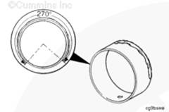 在襯套外徑和缸體凸輪軸孔內部涂抹 Loctite™ 底漆。 讓底漆變干燥。 沿襯套邊緣上部的 270 度圓弧涂覆一層 Loctite™ 609 或等同物,將襯套安裝到缸體后部(參見圖示)。