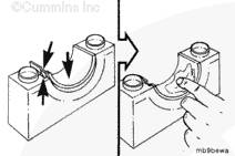 將軸瓦裝入連桿和連桿蓋中。確保軸瓦上的定位舌位于連桿蓋和連桿的槽中。