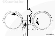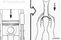 將盤車工具(零件號 3824591)插入飛輪殼中,并使其與飛輪齒圈嚙合。然后可以手持 1/2-英寸棘輪扳手或撬棍,轉動曲軸。