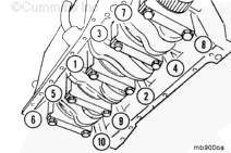 注: 主軸承蓋有位置編號。從缸體前端的 1 號開始,編號必須朝向康明斯ISB5.9 G CM2180發動機的凸輪軸側。