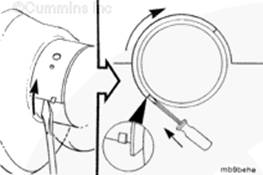 如果使用帶式活塞環壓縮器,確保帶的內側沒有掛在活塞環的缺口并折斷活塞環。