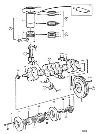 4 1556940 6 Piston pin (1556200) L=120mm. Rebuilt engines are marked with two punch marks after the ser