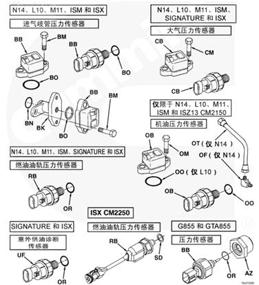 康明斯 N14、L10、M11、ISM、ISX、ISX11.9 CM2250 和 ISZ13 CM2150、G855 和 GTA855壓力傳感器零配部件代碼