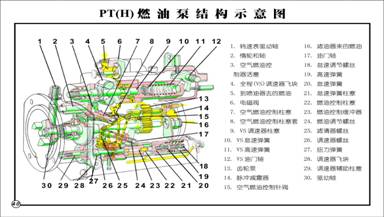 康明斯PT燃油泵包括:齒輪泵、磁性濾清器、脈沖膜片減振器、兩極調速器、 節流軸、電磁閥等。