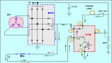 5). 調節器:發電機產生的電壓依據轉速變化.之所以調節器與轉速無關把產生的電壓維持到一定程度.