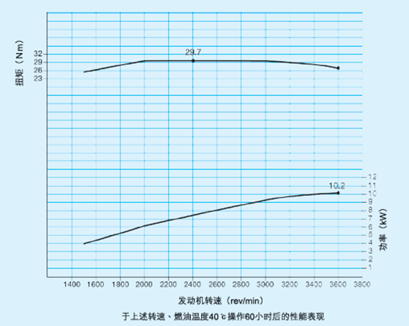 發動機3600 rpm時,功率達10.2 kW,13.7 bhp