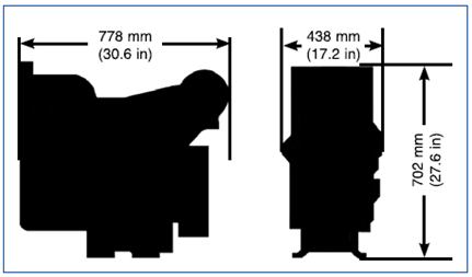尺寸 長778 mm (30.6 in) 寬438 mm (17.2 in) 高702 mm (27.6 in)