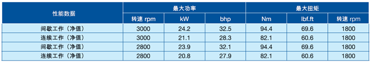 3000 rpm時,功率達(dá)24 kW,32.5 bhp