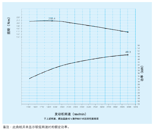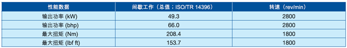 于2800 rpm時,功率達49.3 kW,66.0 bhp