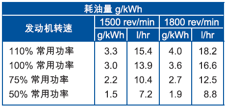 上表所有額定功率數據均為IS0 8528/1、IS0 3046/1:1986、BS5514/1條件下的發動機性能。在其他條件下工作時,性能可能降低。有關上述條件以外工作的數據,請向Perkins公司咨詢。Perkins提供的發電機輸出功率為標準數據,并根據平均標準交流發電機效率及0.8功率因數(cos.q)厘定。