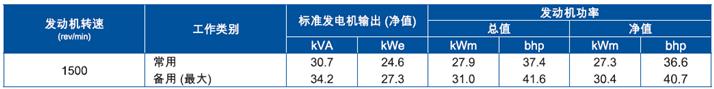 功率:1500 rev/min時(shí),30.4kWm