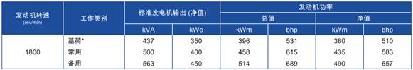 功率:于1800 rev/min時,490 kWm