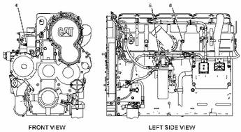 典型的 C15 和 C18 傳感器位置 (4) 發動機冷卻液溫度傳感器 (5) 燃油溫度傳感器 (6) 進氣歧管空氣溫度傳感器 |