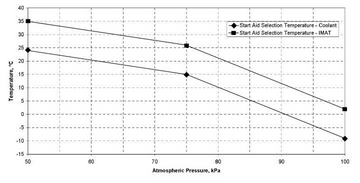 乙醚起動輔助根據冷卻液溫度、進氣岐管溫度和大氣壓力工況圖動作。請參閱插圖 1。