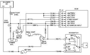 乙醚噴射系統可改善發動機的寒冷天氣起動性能。電子控制模塊(ECM)控制著乙醚噴射系統。 如果發動機停機為激活狀態的話,乙醚噴射系統將被停用。