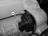 將工具(A)安裝在發(fā)動機(jī)飛輪殼上。使用工具(A)旋轉(zhuǎn)發(fā)動機(jī)。參考圖1。