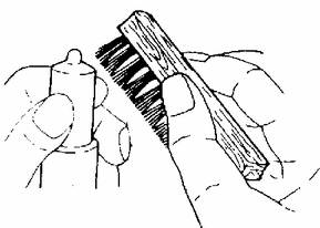 利用8S-2245噴油器清理工具總成內(nèi)配備的8S-2258黃銅絲刷清理積碳。 |