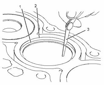 (1)活塞環(huán) (2)氣缸環(huán)形臺階 (3)塞尺 |