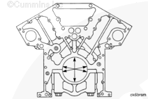 清潔康明斯發動機缸體時要小心。否則會造成機加工的密封墊表面和凸輪軸襯套損壞。 |